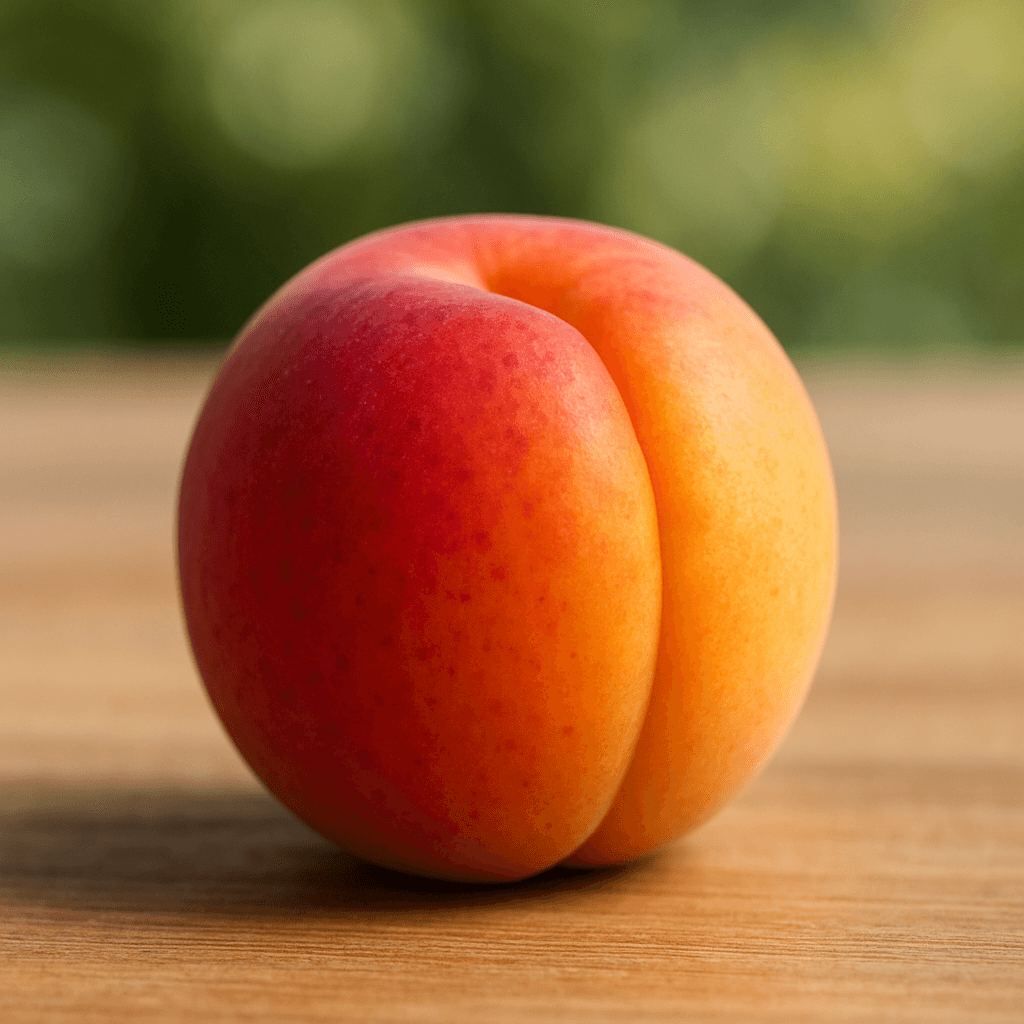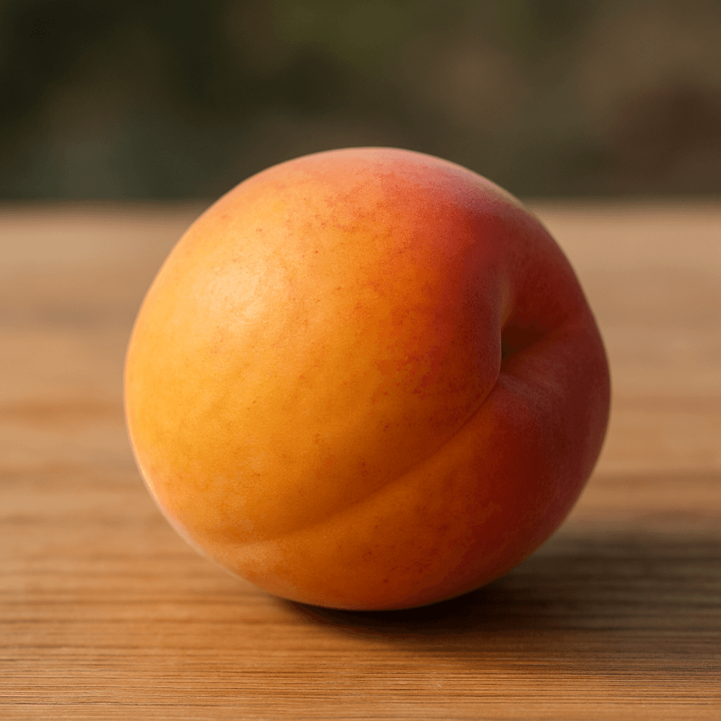 Fruits sphériques 50 g orange doré ponctué rouge, chair fine fondante très sucrée, noyau libre, variété traditionnelle Dauphiné-Savoie.